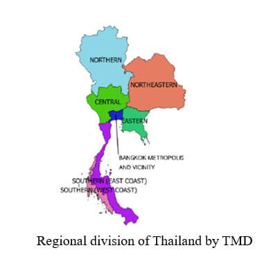El Nino and La Nina are global climate phenomena caused by fluctuations in ocean surface temperatures in the equatorial Pacific. TMD has shown the study of monthly rainfall and temperature during 1951-2000 (50 years). The result shows that the rain is higher than normal in most La Nina years, specifically in summer and winter periods. However, it is also found that La Nina has more effect on temperature than rain.