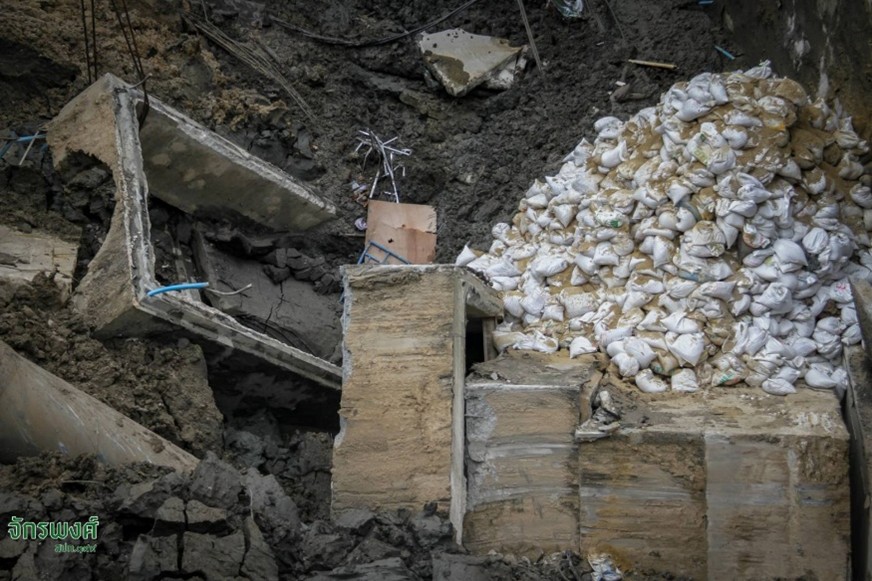 Mass Rapid Transit Authority of Thailand (MRTA) and their contractor sealed the leak tunnel with over 50,000 sandbags to prevent soil and water from entering the hole. After sealing has finished, filling concrete and beginning the road construction will be conducted. This is a plan from Mass Rapid Transit Authority of Thailand (MRTA). This road will be reconstructed and tested before October 9, 2025.